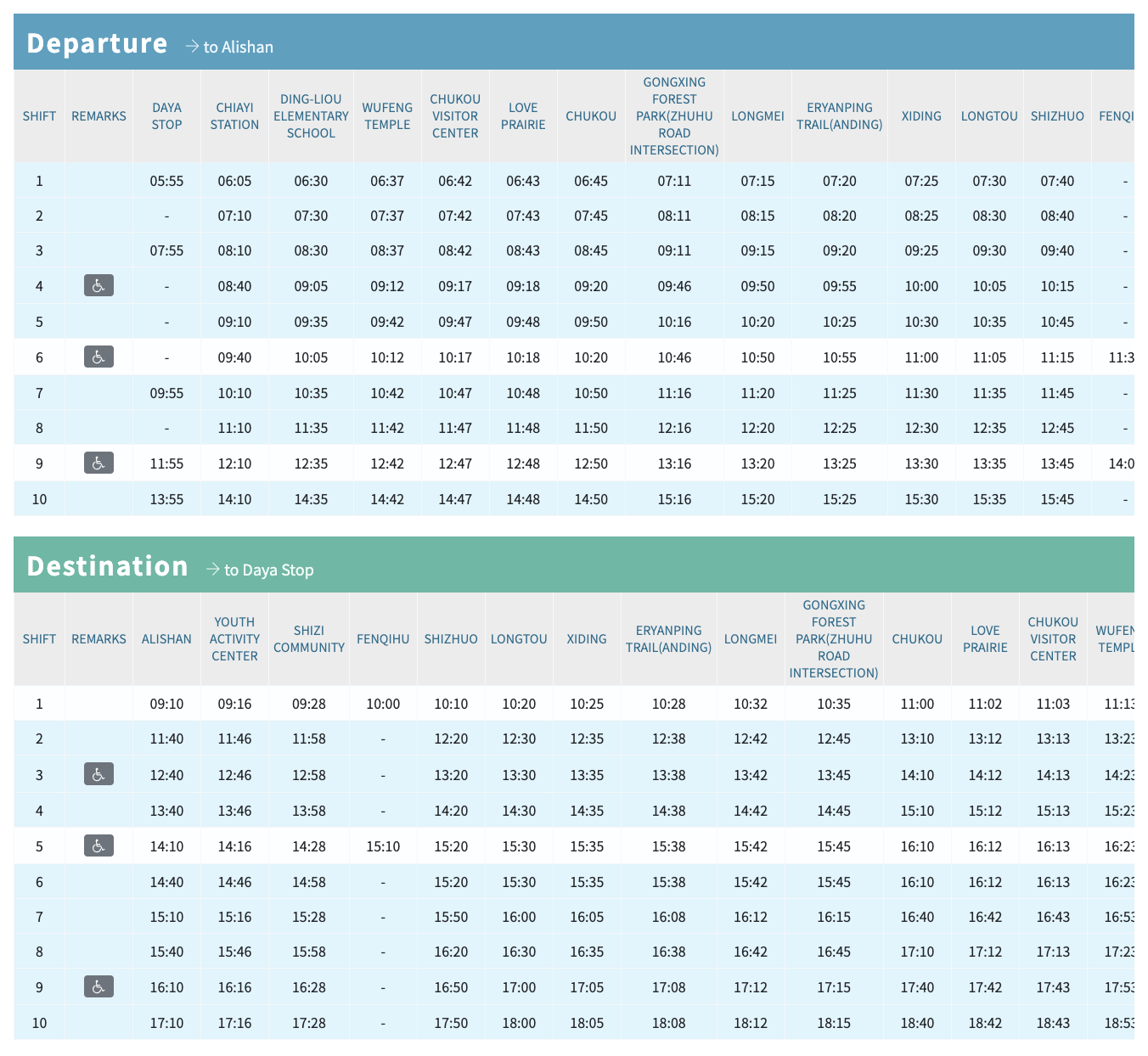 🕒 Timetable: Please refer to the Alishan-B Line (Departing from Taiwan Railways) Timetable